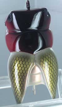羽の部分に金の模様を持ってきて虫の羽根の感じも出しつつレッドヘッドのスケールも生かせたんじゃないかと思います。
